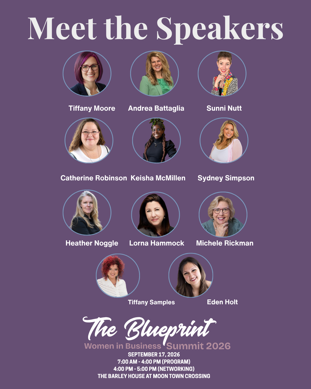 Sunni Nutt, Essential Yoga StudioTiffany Moore, Divergent Behavioral ServicesCatherine Robinson, Wildwood AromasAndrea Battaglia, AbacusKeisha McMillen, Liberated CreativeSydney Simpson, January Social Co.Tiffany Samples, Amplified Identity CoachingLorna Hammock, National Financial SolutionsHeather Noggle, CodistacMichele Rickman, Michele Rickman Coaching